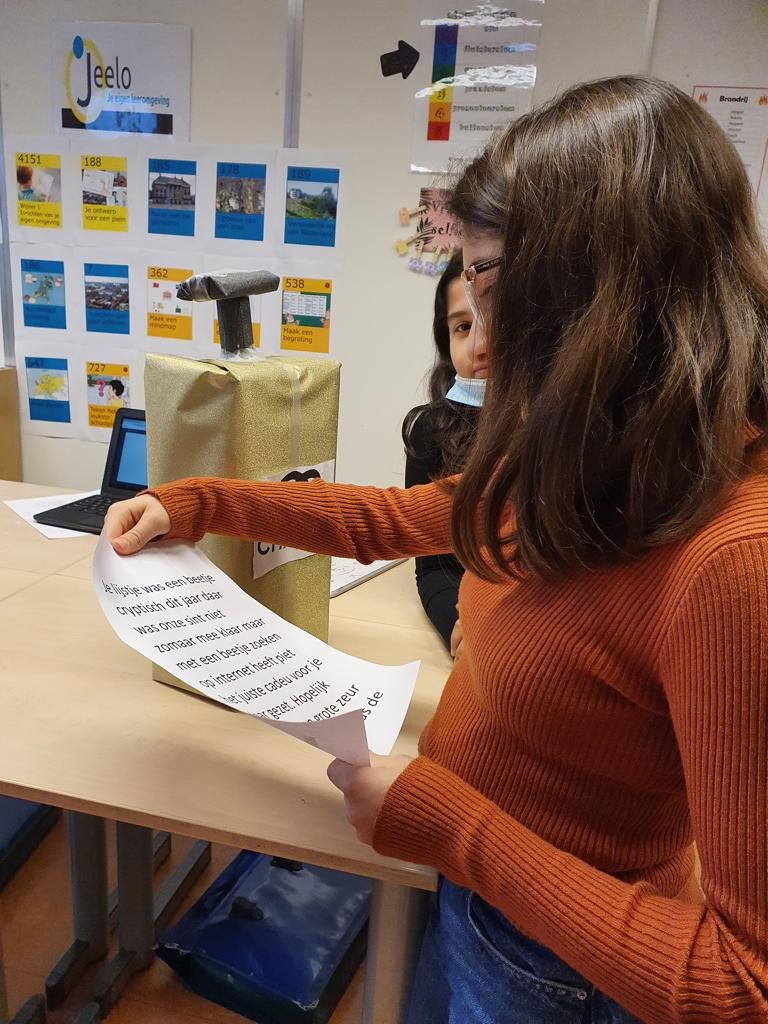 In groep 7 werken de kinderen voor taal en lezen altijd eerst analoog: in het boek of op papier. We vinden het belangrijk dat kinderen blijven lezen en de taalvakken al lezend leren.